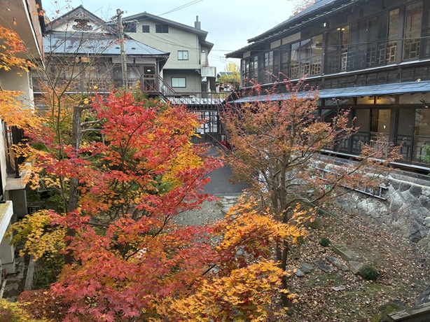今年初めて紅葉の綺麗な時期に泊まることができました。なぜ今まで泊まれていなかったのかというとこの季節とても混んでいて予約が取りづらいことと、自身の体調の悪い時期なので早めに予約もしづらいという事情もありました。今回は数週間前にキャンセルが出たのを見つけて予約しています。最近の大沢温泉は特に一人では予約が取りづらくこのパターンが多くなりました。