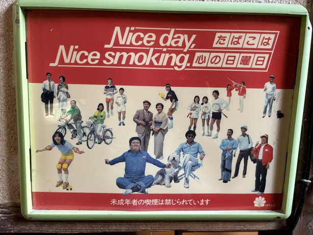 最後に「専売公社」のポスター。今となってはたばこの広告は厳しく制限されているので、このようなポスターが作られることもないのでは。ふと気づいたのですが、このポスター貼り続けても大丈夫なのかな?すでに広告の体をなしていないのでいいのかな。