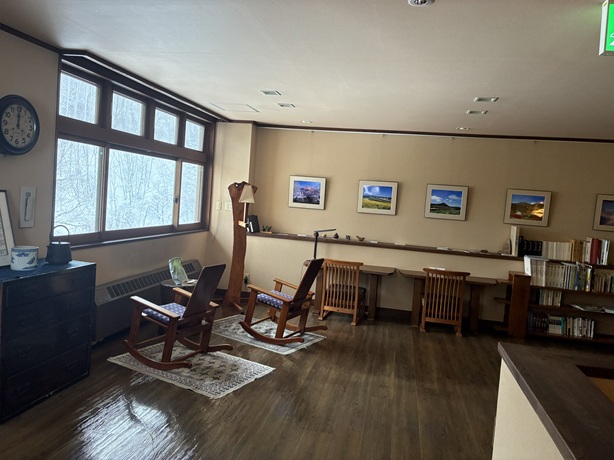 部屋のすぐ近くにロビーがあり、ここも居心地がよくお気に入り。松尾鉱山や遠野物語の本などが置いてありいつも拾い読みしていましたが、今回はがっつり読みました。