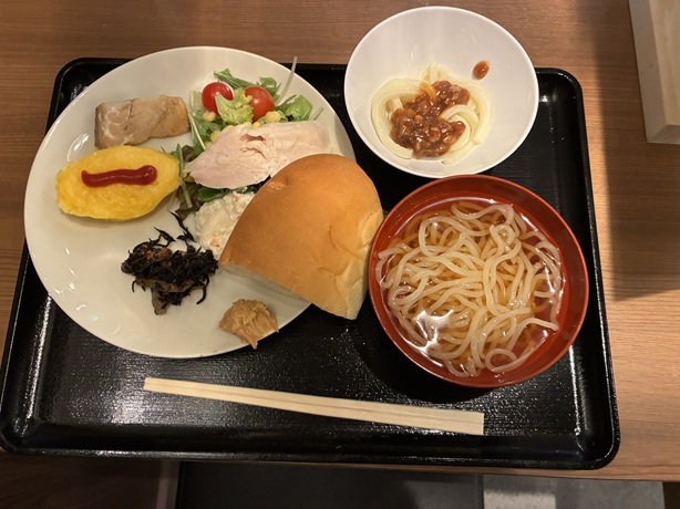 この日は朝食付きプランでこんな感じ。じゃじゃ麺や盛岡冷麺などご当地グルメが楽しめますとのことです。冷麺はというと注文していただくのですが、この画像右下のような「素」冷麺。これはちょっといまいちか。じゃじゃ麺は画像右上のように、用意された麺に肉味噌をかけただけのもの。具がこんだけ?というかんじでしたがこれは案外に美味しかった。ビジホの朝食でご当地グルメと言ってもあまり期待してはいけないですが、心意気は嬉しいですね。