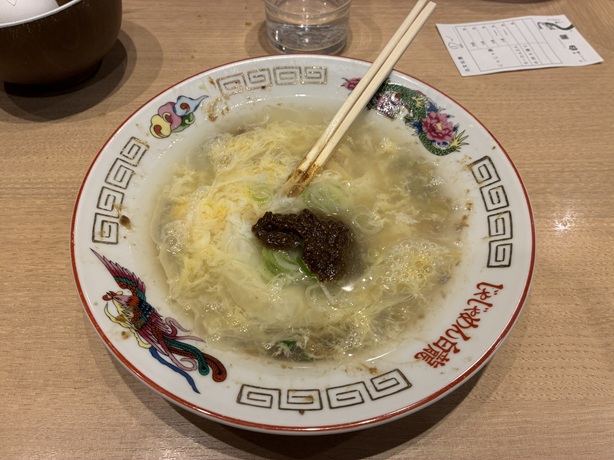 麺を少し残した状態で店員さんにお願いをして「ちーたんたん」で締めます。お湯はいつも通り少な目。常連さんっぽい人はみんなそう言うような気がします。