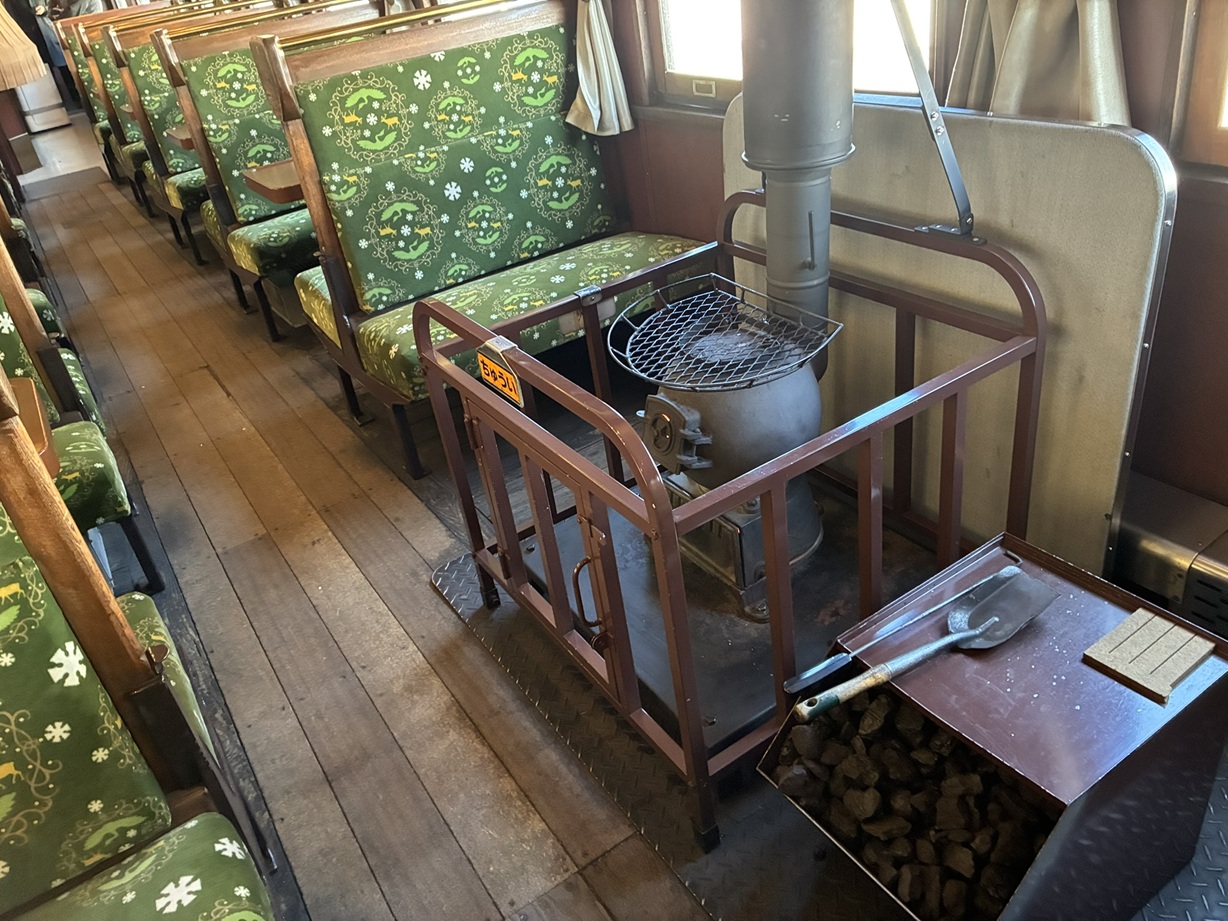 ストーブカーなる車両もあるのでみにいくと、だるまストーブが一部に置いてあります。暖かくて羨ましいと思っていてのですが、スゴイ熱量でかなり暑い。みなさん暑い暑いといって薄着になっていました。