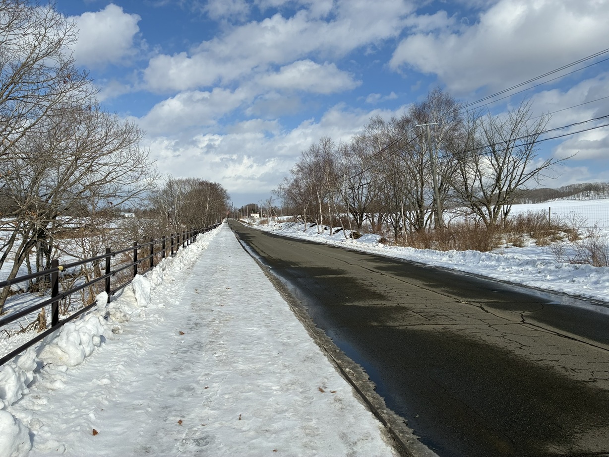 茅沼温泉は駅から徒歩15分ほどの距離。この日の釧路は最高気温6℃とありえない暖かさで風もなく助かりました。ただ、こんな道をひとりで歩くのは車もあまり通らないのでちょっと怖い。さすがに熊は出ないのでしょうが…