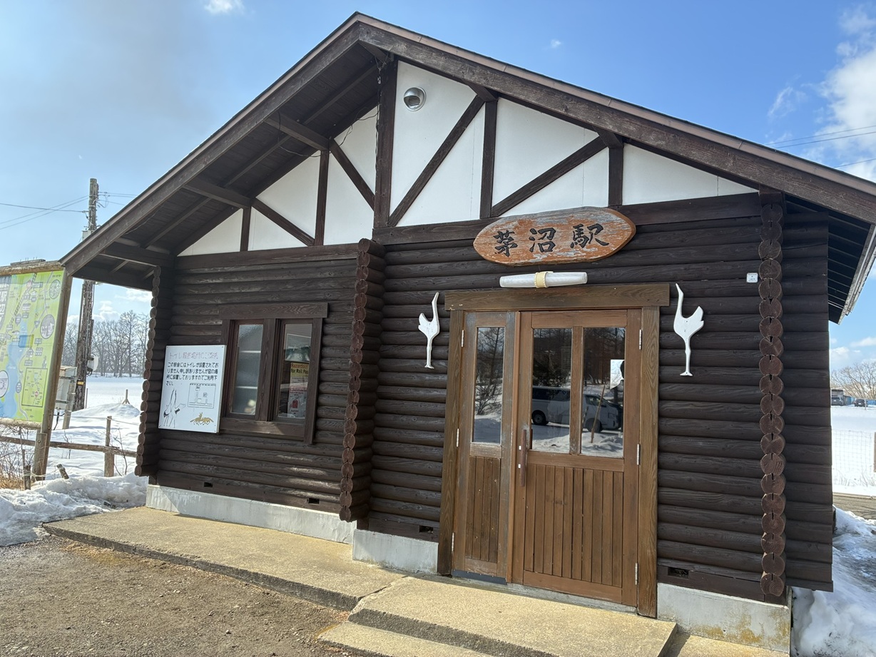 再度15分歩いて茅沼駅に戻り、列車を待っていると鶴の鳴き声が!茅沼は駅で餌付けをしてて有名でしたが、遠いところにいました。
