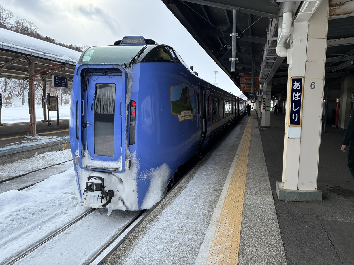充分堪能してバスで網走駅に戻ります。宿は北見なので1時間ほどですが特急「オホーツク」に乗車。この日はあれこれ疲れて、暖かい客室とほどよい揺れで居眠り。北見を乗り過ごさないように気をつけます。