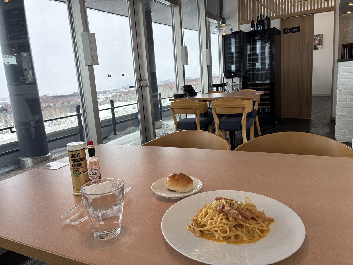 流氷に必死でホテルの朝食からは何もべていません。少し遅いお昼でカルボナーラを頂きました。案外といっては失礼ですが本格的なイタリアンのレストランで美味しかったです。