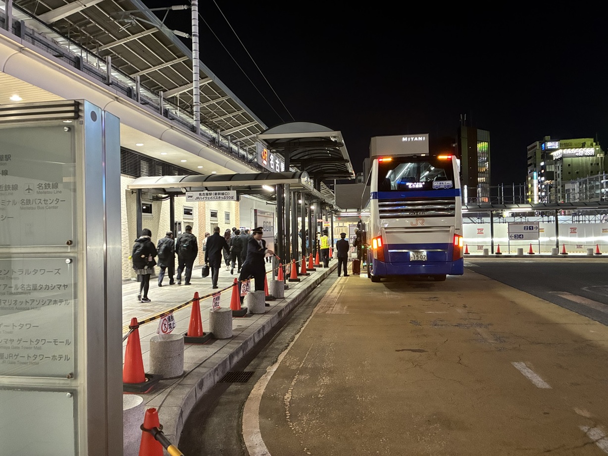 夜行バスはちゃんと寝られたためしがなく翌日自分が使い物にならないので昼行にします。ただし東京⇔関西では一日潰れてしまうので、東京を昼過ぎに出る名古屋行きで試してみることしました。